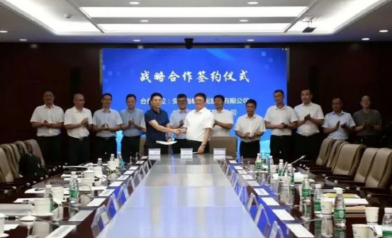 中鐵四局副總經理、總經濟師朱曉勇與海螺集團總經濟師丁鋒代表雙方簽署協議