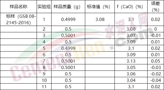 表1 全自動游離氧化鈣測量系統測量的
