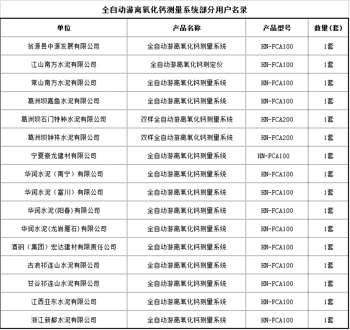 到目前為止,此儀器已在廣東韶關、寧夏中寧等多個水泥廠的游離氧化鈣測量工作中得到應用,克服了以往人工作業的各種缺點,具有實用性和經濟性等優點。下表2為部分水泥廠使用此儀器測量的數據表:
