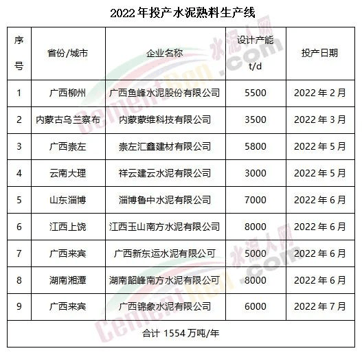 據水泥人網不完全統計,今年以來,截至七月底共投產水泥熟料產線9條,合計熟料產能1554萬噸。僅廣西區域就有4條水泥熟料生產線,熟料產能合計達669萬噸/年。