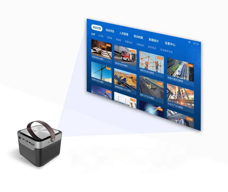 安培魔盒是一款解決水泥企業安全教育培訓難題的移動智能終端,其自帶投影,體積小巧輕便,內置成體系的安全培訓課程和安全培訓管理系統,安管人員通過它可隨時隨地開展一次規范的安全教育培訓,涵蓋掃碼考勤、多媒體培訓、手機考試、自動歸檔全過程,全面解決企業培訓組織難、考核閱卷難和檔案整理難等問題,讓企業輕輕松松開展安全培訓工作,減輕安管人員培訓工作量。