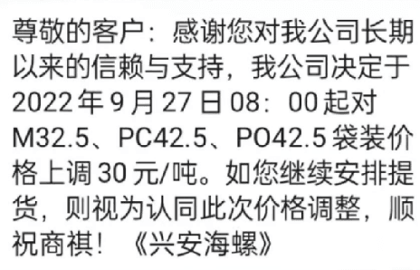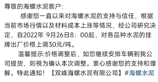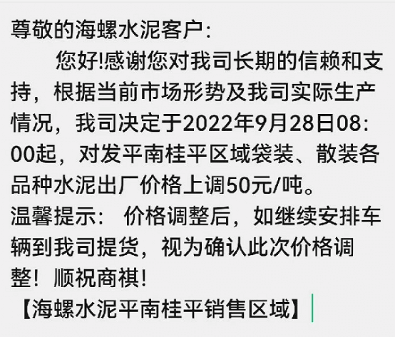 海螺漲價只發調價消息,不見蓋章公函
