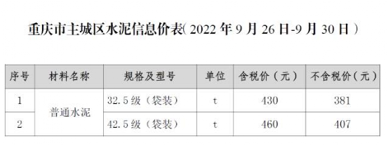 重慶主城區(qū),冀東水泥、西南水泥、海螺水泥多個(gè)品牌企業(yè)競(jìng)爭(zhēng)市場(chǎng)。9月底造價(jià)處發(fā)布的信息價(jià)為42.5級(jí)袋裝報(bào)價(jià)407-460元/噸。主要品牌企業(yè)出廠報(bào)價(jià)300-330元/噸,市場(chǎng)報(bào)價(jià)卻高達(dá)500-510元/噸。