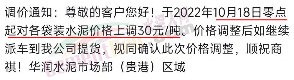 華潤水泥北海區域通知10月17日零時起,對發北海區域各品種水泥出廠價格上調30元/噸。