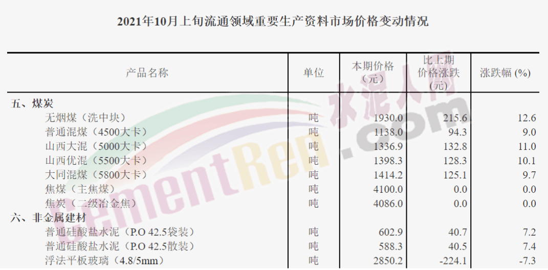 煤炭價格持續高位運行,水泥價格同比下跌近200元/噸