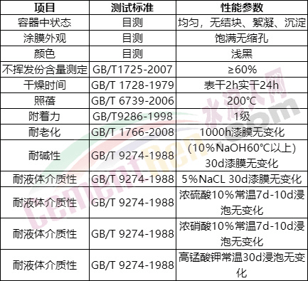 據水泥人網了解,目前常用的防腐材料有玻璃鱗片膠泥、玻璃鋼、不銹鋼三種,但都有易脫落、強度低、安裝難度大、成本高等缺點。經過海螺集團、金隅冀東集團、華潤水泥、臺泥水泥、塔牌水泥、中建材集團等多家集團性企業的多方考察調研,最終在收塵器、窯尾鋼制煙囪的防腐方面,選擇了西安中建盛唐環保科技有限公司(以下簡稱“西安中建盛唐”)的“鈦盾牌”防腐產品石墨烯防腐涂料。該涂料的基本性質和涂膜性能如下圖所示。
