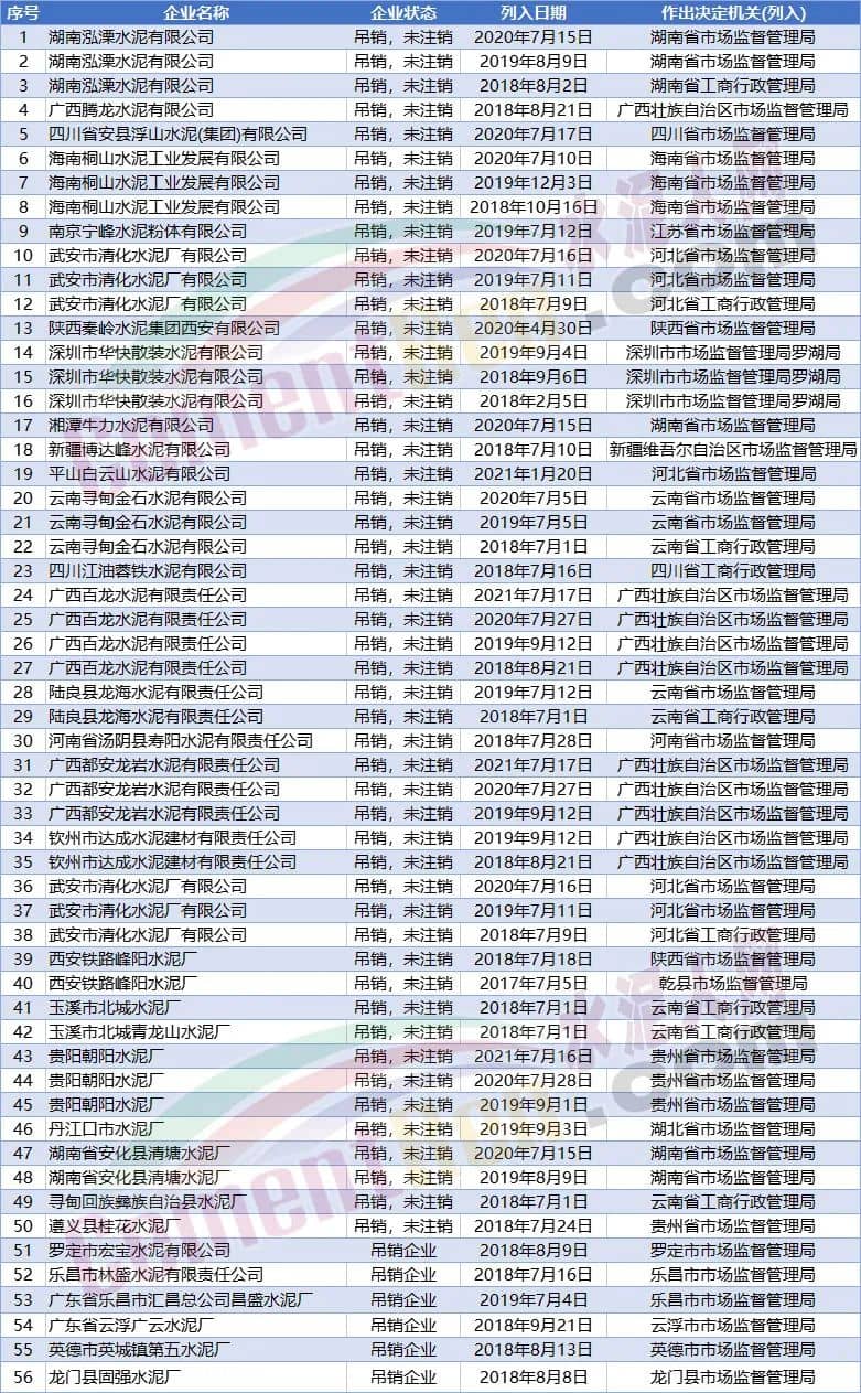 據水泥人網查詢,近年來被列入嚴重違法失信的水泥企業并非只有這一家。僅2022年1月至今就有70家水泥企業被列嚴重違法失信企業名單。