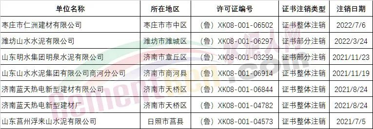 近來,山東、山西、浙江、河北、河南、湖南、內蒙古、寧夏、青海等多個省市自治區公布注銷水泥生產許可證名單。