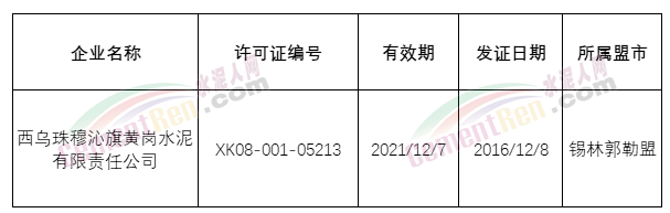 內蒙古自治區1家水泥企業生產許可證被注銷;