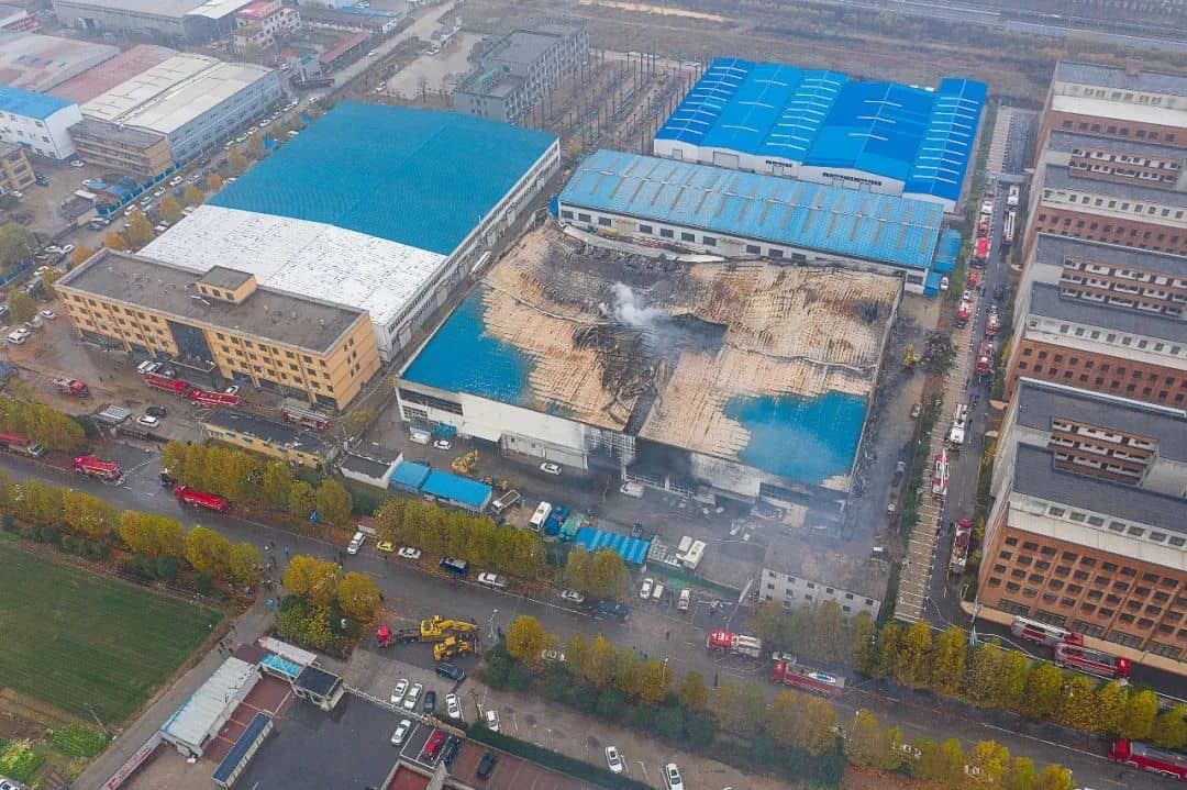 這是11月22日拍攝的河南安陽火災(zāi)現(xiàn)場(無人機照片)。新華社記者 李嘉南 攝