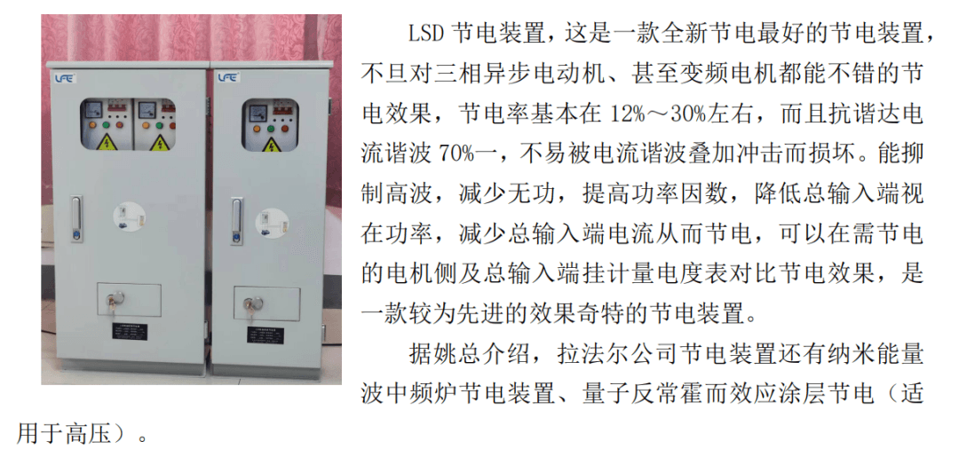 拉法爾與LSD系列節電產品、技術的完美結合具有多種高科技節電產品與實戰經驗,過硬的技術團隊:中國《電源學會》高級教授曾凡昌老先生、遼寧省鐵嶺市“市長杯”“鐵嶺市電工技術狀元”趙雙喜先生(遼寧科技大學)、遼寧大學電氣化專業,曾創造在變頻器基礎上節電的電學博士趙雙江先生為企業做節電、技術保障。