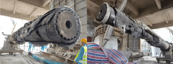 窯筒體過熱時采取噴水降溫的方式是各企業嚴格禁止的,如果已經出現局部溫度過高或燒紅,無法在窯運轉的情況下降溫的情況,需要緊急停窯,降溫、換磚、挖補或更換部分窯筒體。相對較嚴重的情況下也可能出現筒體局部嚴重變形,無法砌筑耐火磚。更嚴重地,如出現裂紋,裂縫或者燒透了,出現“大洞”,無法通過上述方法修復的,就只能選擇更換部分窯筒體了。