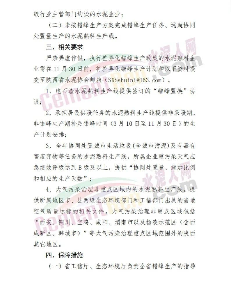 (五)大氣污染治理非重點(diǎn)區(qū)域(漢中、安康、商洛、延安、榆林)內(nèi)的水泥熟料生產(chǎn)線,如果所屬市、縣上年度空氣質(zhì)量達(dá)標(biāo),且同時(shí)完成大氣污染考核目標(biāo)任務(wù),錯(cuò)峰生產(chǎn)時(shí)間可減半。