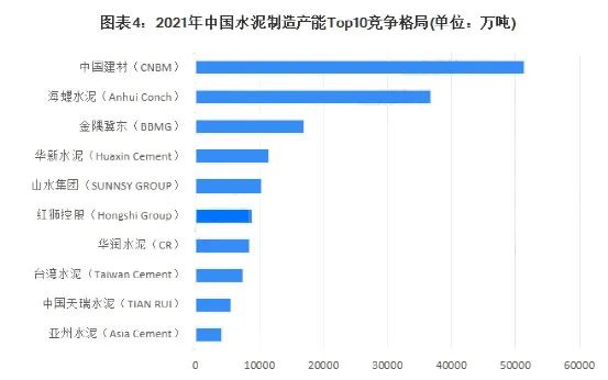 龍頭企業方面,截至2021年底,中國(不含港澳臺)前50家大企業集團的水泥熟料設計產能共計14.2億噸,占全國總產能的77%。其中,前10家大企業集團的水泥熟料產能占全國總產能的58%,比2019年增長1%。
