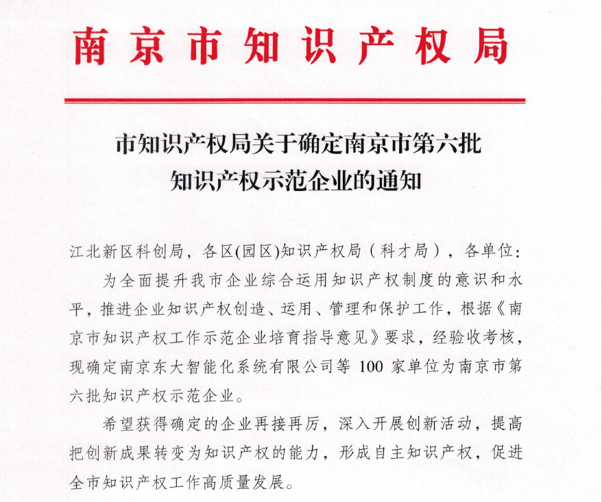 據悉,“南京市知識產權示范企業”主要表彰一批具有較好自主知識產權管理工作、市場競爭力較強的示范建設企業,旨在推動南京市傳統優勢產業、戰略新興產業和知識產權密集型產業發展,并在全市形成示范、引導和輻射效應,為建設創新名城提供有力支撐。