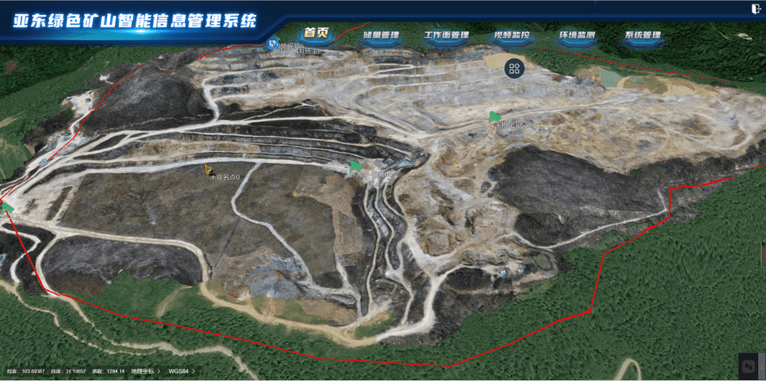 為了精準開采、綠色開采,亞東水泥建成了黃岡亞東、江西亞東及四川亞東礦山三維可視化系統模組,提供礦山可視化展示效果,全方位展示礦山采區生產信息、復墾綠化及環境監測(粉塵、噪音等)等內容。三維分析測量工具可減少生產中的測量作業工作,模型高程和水平量測精度優于10cm/像素點,可以達到 1:500 比例尺的精度,提高工作效率。