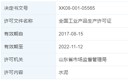 天眼查APP顯示,淄博錦川水泥有限公司,成立于2002年,位于山東省淄博市,是一家以從事非金屬礦物制品業(yè)為主的企業(yè)。生產(chǎn)許可證編號(hào)XK08-001-05565有效期至2022-11-12。許可產(chǎn)品為通用水泥42.5R,生產(chǎn)類型為粉磨站,擁有一條粉磨生產(chǎn),關(guān)鍵設(shè)備為φ3.2*13m磨機(jī)1臺(tái)。目前該許可證已處于失效狀態(tài)。山東省市場(chǎng)監(jiān)管局?jǐn)?shù)據(jù)庫未查詢到上述企業(yè)生產(chǎn)許可證換發(fā)或延續(xù)的信息。