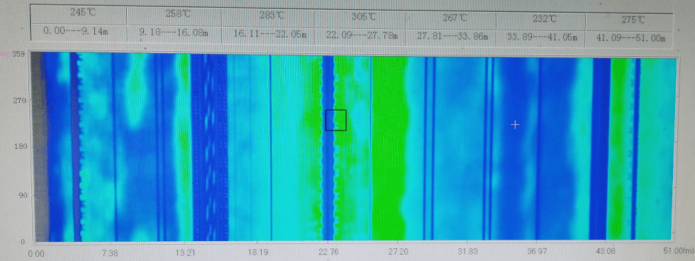 圖4 HJ節能燃燒器窯筒體溫度分布1