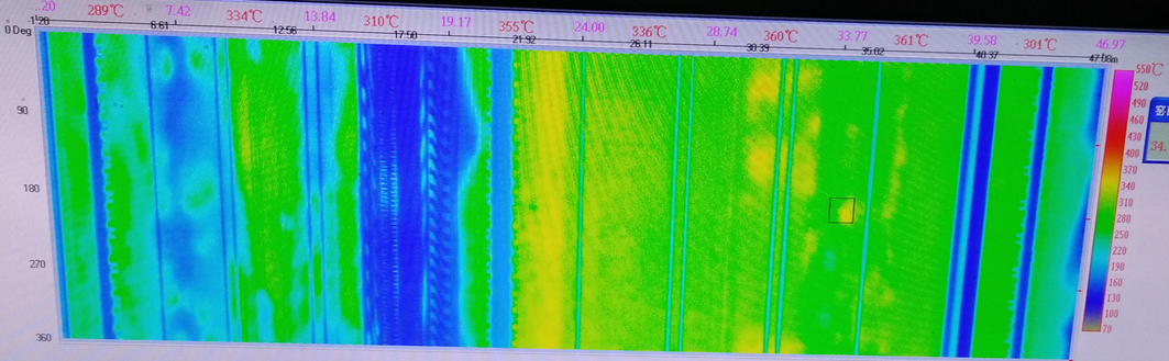 圖5 HJ節能燃燒器窯筒體溫度分布2