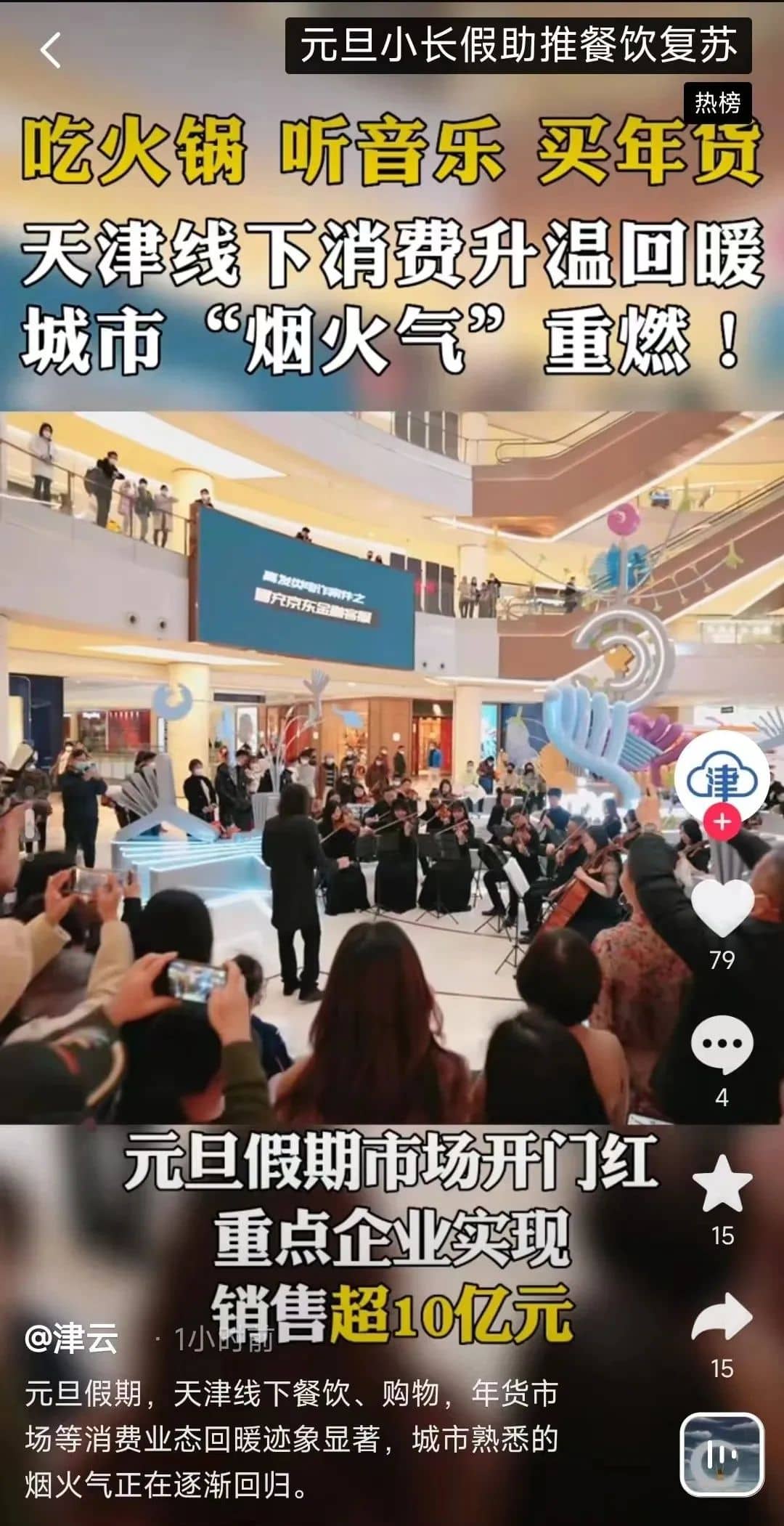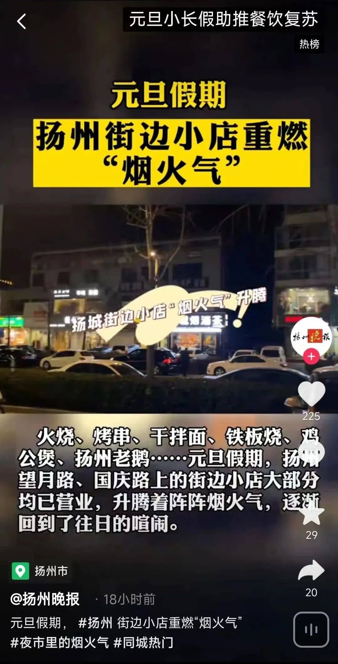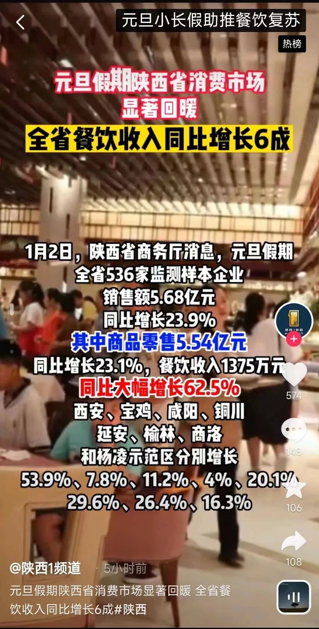 近日,“元旦小長假助推餐飲復(fù)蘇”登上了熱榜。陜西全省餐飲收入同比增長6成,天津元旦假期重點企業(yè)實現(xiàn)銷售超10億元,楊州望月路、國慶路上的店鋪回到了往日的喧鬧……
