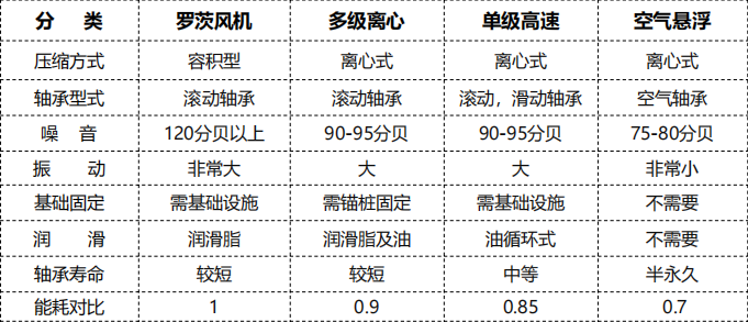空浮風機比傳統羅茨風機節能25%~35%,比多級離心風機節能10%~20%,是目前最節能、最高效的高速流體設備。