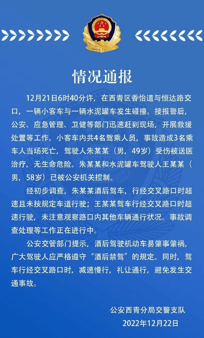 天津水泥罐車與小客車碰撞導(dǎo)致3人當(dāng)場死亡