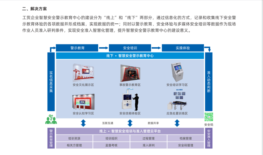 金隅冀東水泥合川有限公司智能VR安全體驗(yàn)培訓(xùn)館分為前廳、安全防護(hù)認(rèn)知區(qū)、事故傷害實(shí)訓(xùn)區(qū)、多媒體智慧教室、VR事故體驗(yàn)區(qū)共五大功能區(qū),采用“正向?qū)嵱?xùn)、逆向體驗(yàn)、安全互動”的安全培訓(xùn)創(chuàng)新模式。