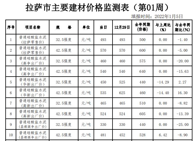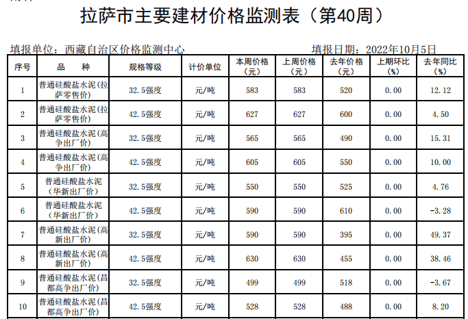 2022年內(nèi)各大水泥企業(yè)多次推漲,以止跌穩(wěn)價,推了一年也沒能將價格推到2021年末的水平線。一直處于市場價格相對高位的西藏區(qū)域,水泥價格也一改往年高不可攀的態(tài)勢,一路下跌。西藏發(fā)改委數(shù)據(jù)顯示, 2022年10月初,42.5標(biāo)號水泥報價在528~630元/噸之間。同年1月初42.5標(biāo)號水泥報價在481-570元/噸之間。高低價差在149元/噸,1月至10月跌幅約在9%左右。與以往年份900元/噸以上的市場價格相差較大。