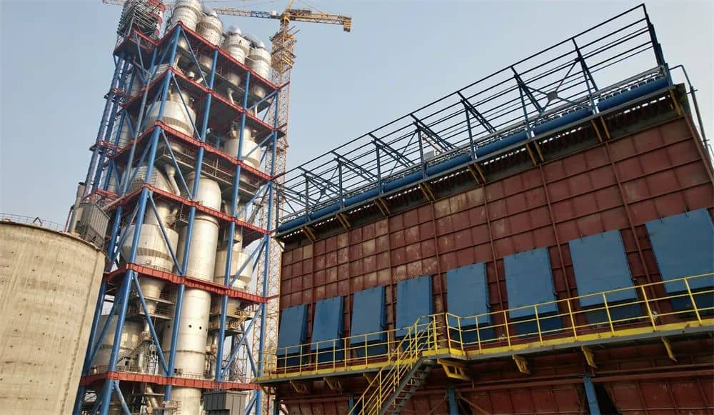 十二、泉興水泥公司新建4000t/d水泥熟料生產(chǎn)線預(yù)熱器塔架起吊成功,計(jì)劃于2023年9月15日點(diǎn)火