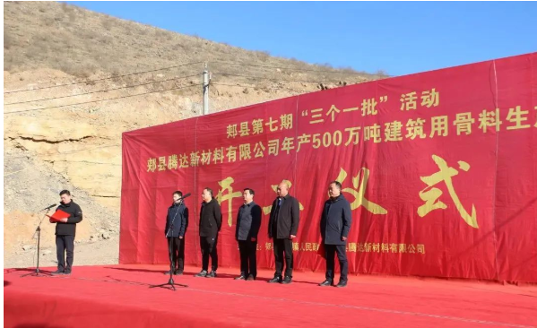 1月28日上午,河南省平頂山市郟縣第七期“三個(gè)一批”活動(dòng)暨騰達(dá)新材料有限公司500萬噸/年建筑用骨料生產(chǎn)線項(xiàng)目開工奠基儀式隆重舉行。據(jù)悉,該項(xiàng)目總投資10億元,生產(chǎn)線設(shè)計(jì)規(guī)模為3000t/h。