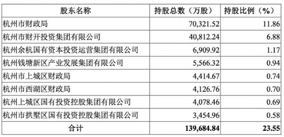 此次解除后,8家股東持有的股份數(shù)不再合并計算。與此同時,杭州市財政局的持股比例,也將由一致行動關(guān)系下的23.55%降至直接持股11.86%,身份不再是實控人。