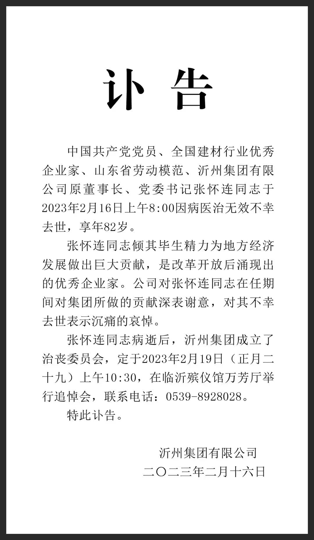 訃告!沂州水泥集團(tuán)原董事長去世!