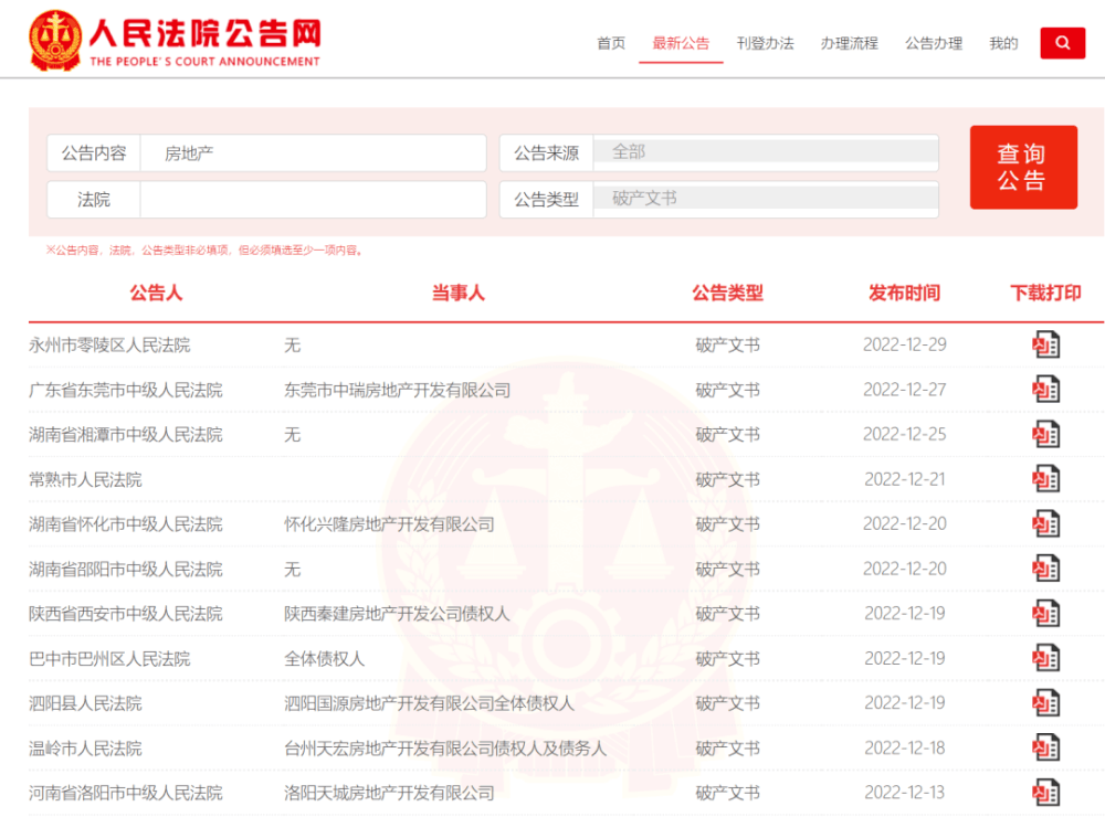 2022年,房地產企業暴雷無數,每隔幾天,就會有大牌房企。據人民法院公告網顯示,全國已有超450家以房地產為主或與房產相關的企業申請破產。百強房企暴雷接近50%左右的比例。