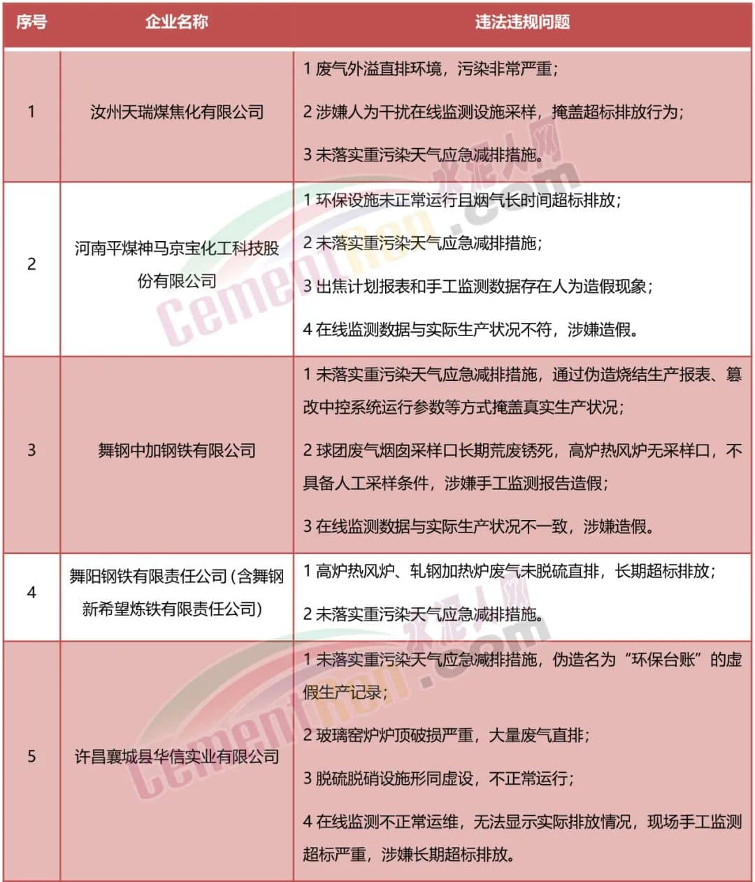 近日,生態環境部部長黃潤秋、副部長趙英民分別帶隊赴水泥大省河南和陜西對涉及氣企業進行突擊檢查。企業普遍存在不正常運行污染治理設施、超標排放、不落實重污染天氣應急減排措施、生產臺賬弄虛作假、在線監測和手工監測數據造假等違法違規問題。