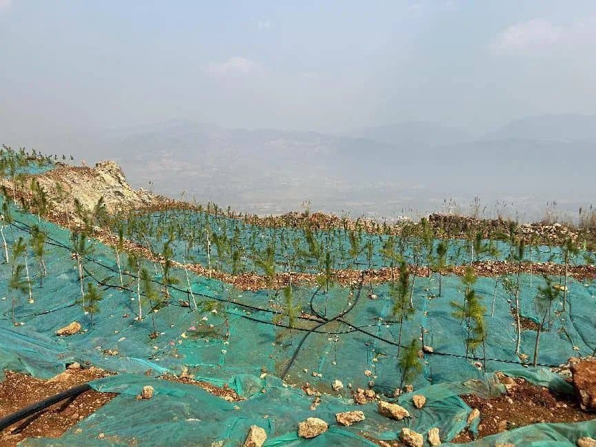 截至2023年2月14日,金江水泥累計修復面積83440.21㎡,完成率74.23%,投入資金497.05萬元。累計完成平臺覆土約23100噸,邊坡坡面鋪設爬藤類植物攀爬網約43273.71㎡,安裝輸水管道及噴淋系統約31676.7㎡,種植草籽及草本類花卉種子約29676.7㎡,種植邊坡坡面攀爬藤3000株,平臺種植喬木3500棵。