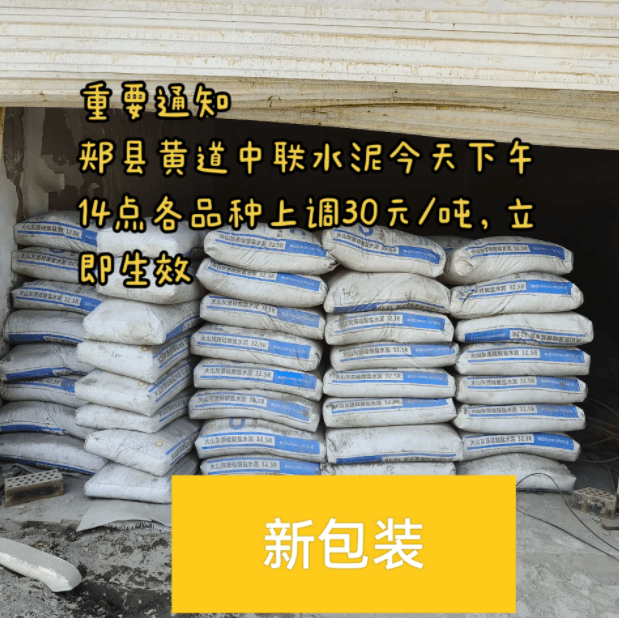 郟縣黃道中聯水泥價格自3月6日下午14點起上調30元/噸。