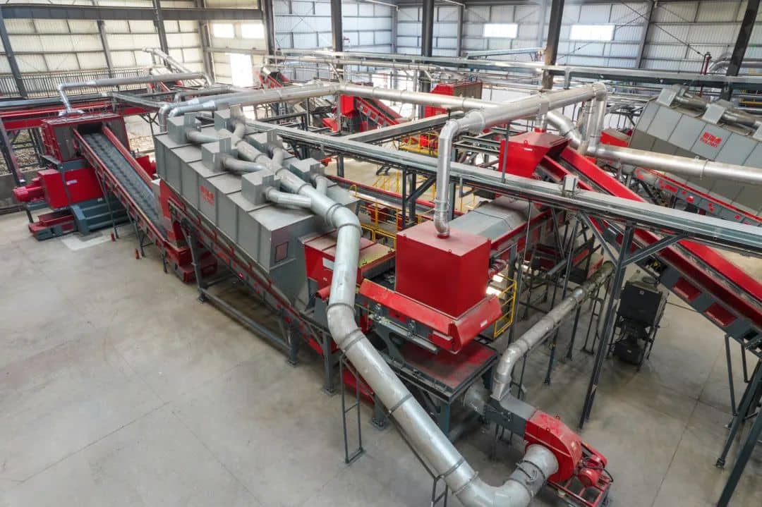 整套處理系統以“模塊化、集成化、自動化”的設備相互組合,通過斯瑞德所研發的雙級破碎理念,再通過磁選機除去鐵質金屬,風選機除去重物質混合物,最終制備成尺寸80mm左右、含水量13%左右的SRF替代燃料。