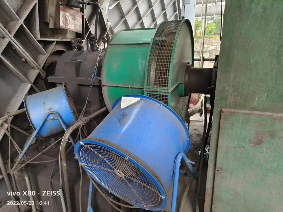 新余集團某公司2500kW渦流永磁耦合器使用現場,因其渦流永磁耦合器發熱問題,還需配備5臺大功率風機吹風散熱!