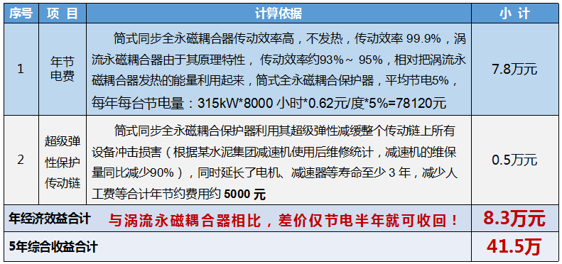 由此產生的經濟效益十分可觀!以原使用渦流永磁耦合器對比估算(按315kW電機估算):