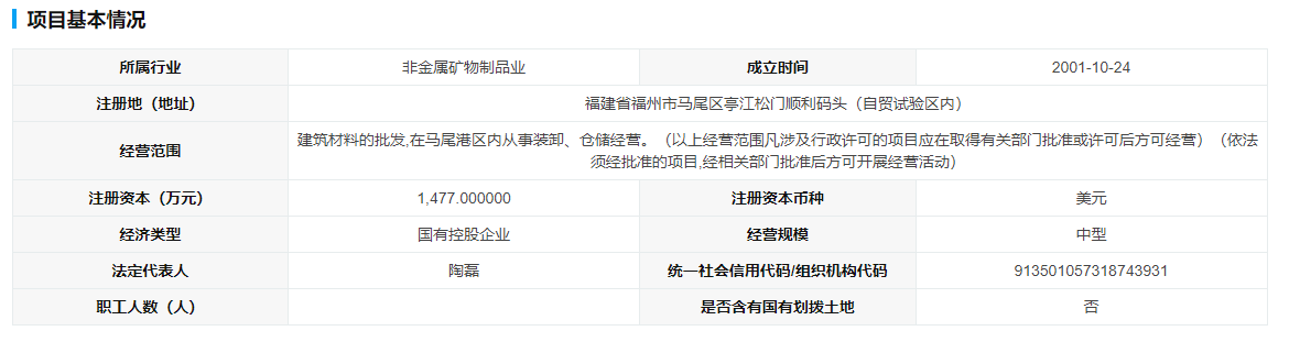 華潤水泥(福州)有限公司企業(yè)地址位于福建省福州市馬尾區(qū)亭江松門順內(nèi)從事裝卸、倉儲(chǔ)經(jīng)營等。