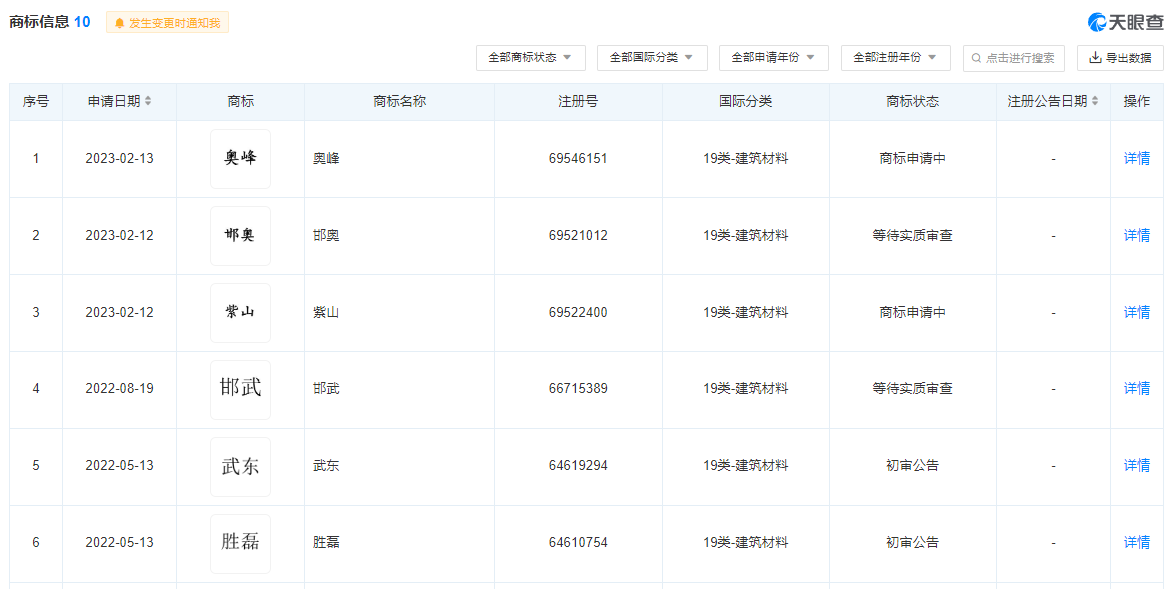 水泥人網注意到,企業旗下與國內知名商標類似的有“昊輝山水、鑫太行”目前狀態為已注冊狀態,“江北山水”商標為無效狀態。