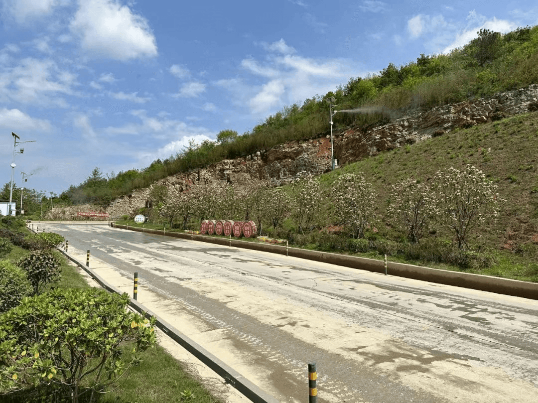 為建設無塵礦山,避免石料卸車時形成揚塵,兗州中材投資設計了361平臺卸料大棚,棚內安裝噴霧降塵系統,形成作業時外面不見灰、里面不見土的清潔作業環境,有效保證了礦山作業時司機的健康安全。