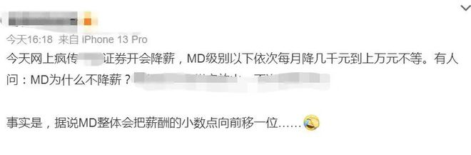 近日,券商“一哥”中信證券傳出降薪消息。根據(jù)網(wǎng)上截圖,該中字頭券商的投行中低職級員工的每月固定薪酬或?qū)⑵战?,根?jù)職級每月固薪的下降5000元至10000元之間。