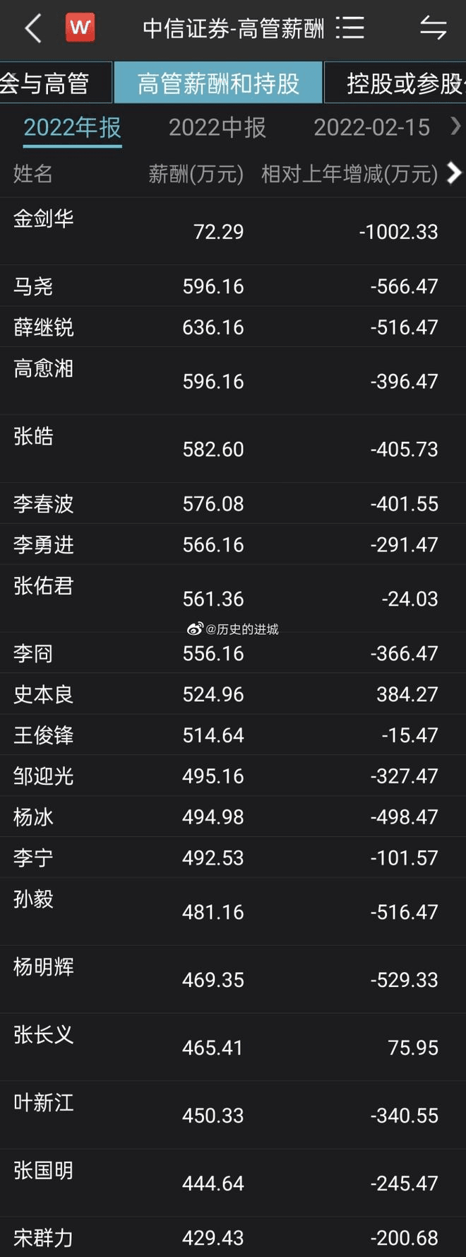 同期,中金公司高管也出現(xiàn)大幅降薪,2022年董監(jiān)高年度薪酬總額為4126.20萬元,縮水5315.40萬元,較2021年9441.6萬元同比下滑56.30%,成為披露數(shù)據(jù)中降幅最大的券商。
