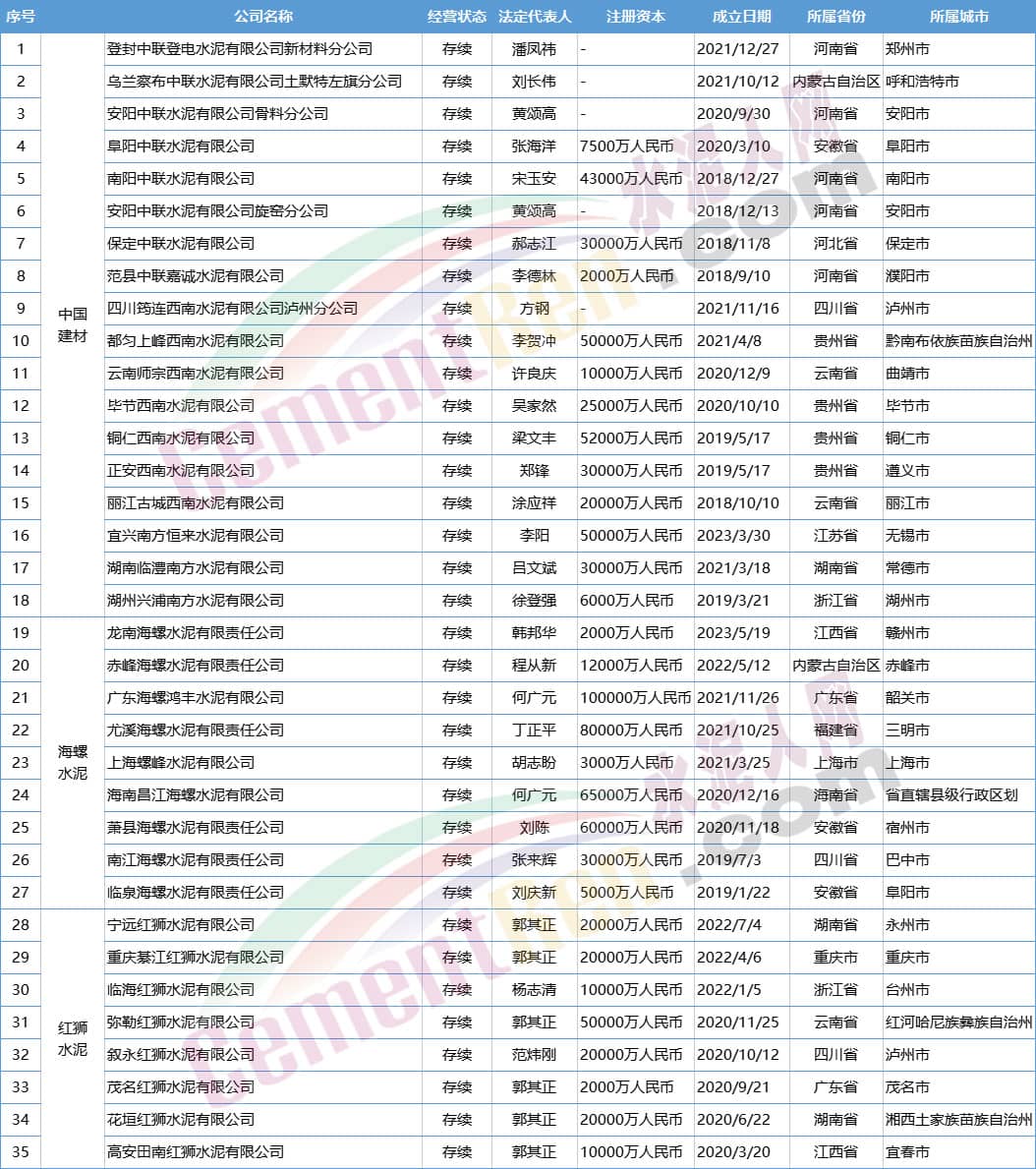 業內人士表示,新公司的成立也意味著新市場的建立,這或與海螺水泥、紅獅水泥等品牌企業發力市場建設有關。
