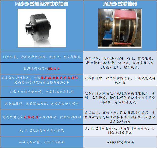 具體詳見(jiàn)同步永磁超級(jí)彈性聯(lián)軸器與渦流永磁聯(lián)軸器對(duì)比表: