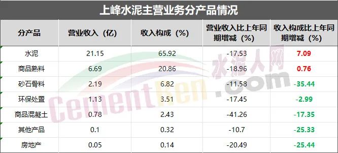 今年上半年,上峰水泥各產品業務營業收入同比去年均有所減少,但水泥和商品熟料營收收入占比同比去年有所增加。