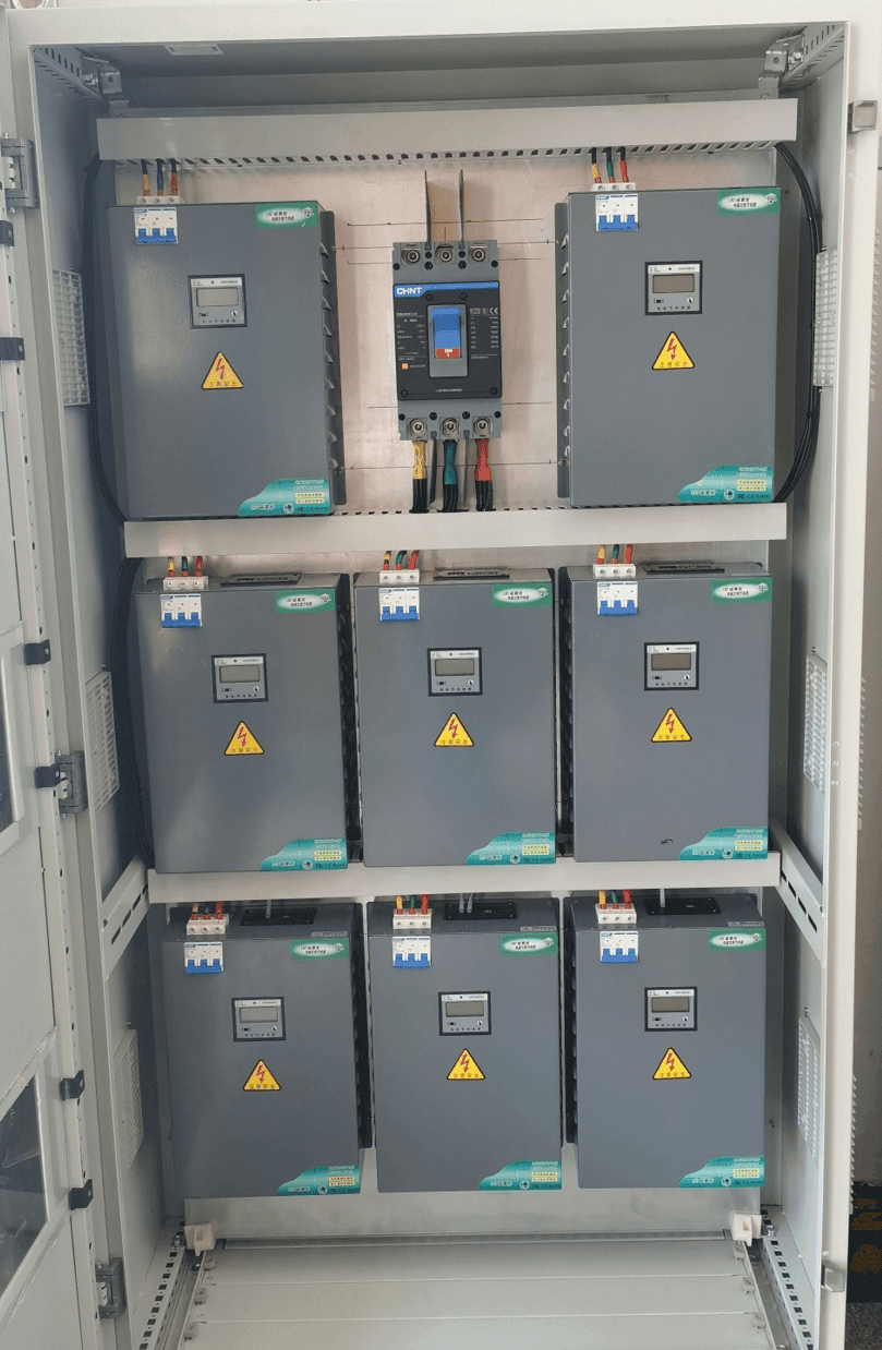 切除節電器時根據中控電腦上顯示平均每小時用電度在61.6kw左右。在電流比較穩定的情況下,切入節電器時平均每小時用電在54.2kw左右。接入節電器后,節電率可達12%。