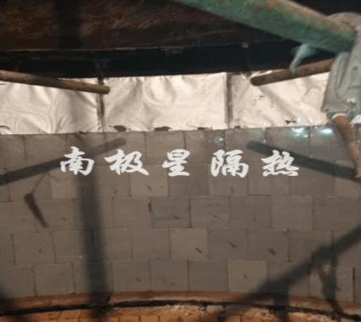 施工中,35mm納米隔熱板分兩層施工,一層25mm粘貼于鋼殼上,然后施工10mm的隔熱氈,兩層隔熱板錯縫施工。采用35mm納米隔熱板代替100mm的硅酸鈣板,內部直徑增加130mm,容積增加了32立方米,外殼溫度由原來的120℃下降到80℃,降溫幅度為40℃,擴容和節能效果明顯,同時50天就收回了投資。