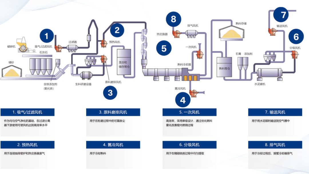 銳志風機針對水泥行業(yè)的改造升級趨勢,提供個性化解決方案,產(chǎn)品涵蓋1.1kW至10000kW的高性能離心風機,提供水泥行業(yè)全流程風機產(chǎn)品組合,完全覆蓋多樣性水泥工藝要求,幫助水泥行業(yè)客戶節(jié)能增效,可靠運行,持續(xù)優(yōu)化成本,實現(xiàn)低碳綠色可持續(xù)發(fā)展。
